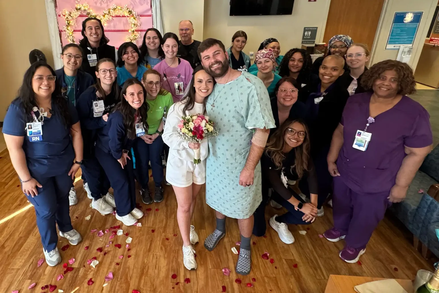 No dia 27 de fevereiro, a área de espera do Baylor Scott & White Medical Center, em Temple, Texas, se transformou em cenário de esperança. Enfermeiras e profissionais de saúde se uniram para preparar uma cerimônia especial, com decoração simples e emocionante, incluindo uma “passarela” feita com pétalas de rosas.
