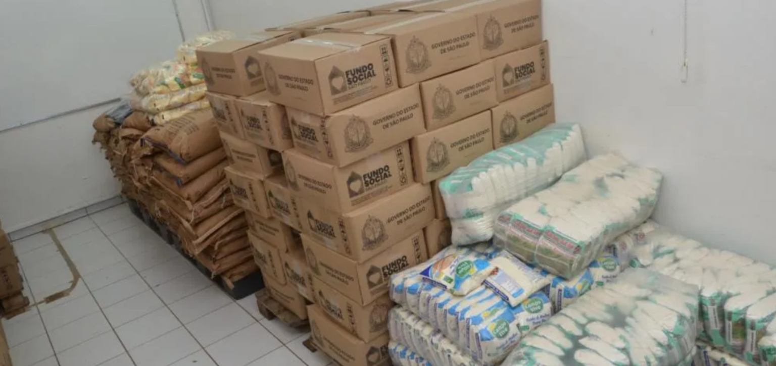 As cestas foram repassadas pelo Fundo de Solidariedade do Governo do Estado de São Paulo ao Banco de Alimentos, com distribuição realizada pela Secretaria de Ação Social. Os itens incluem arroz, feijão, óleo, macarrão, açúcar, sardinhas, goiabada e outros alimentos.