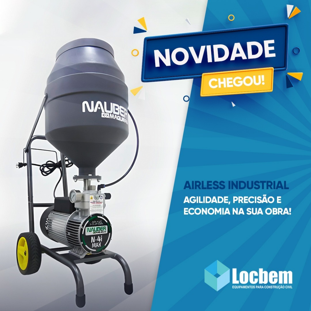 Entre os principais equipamentos disponíveis para locação estão compressor de ar, lixadeira orbital, lixadeira para massa corrida, máquina de solda, fresadora, parafusadeira e a cada vez mais requisitada airless, equipamento que revolucionou o mercado de pintura. A airless permite a aplicação uniforme da tinta em grandes áreas, reduz desperdícios e possibilita a conclusão de obras de grande escala em poucos dias, com acabamento profissional e ganho expressivo de produtividade.